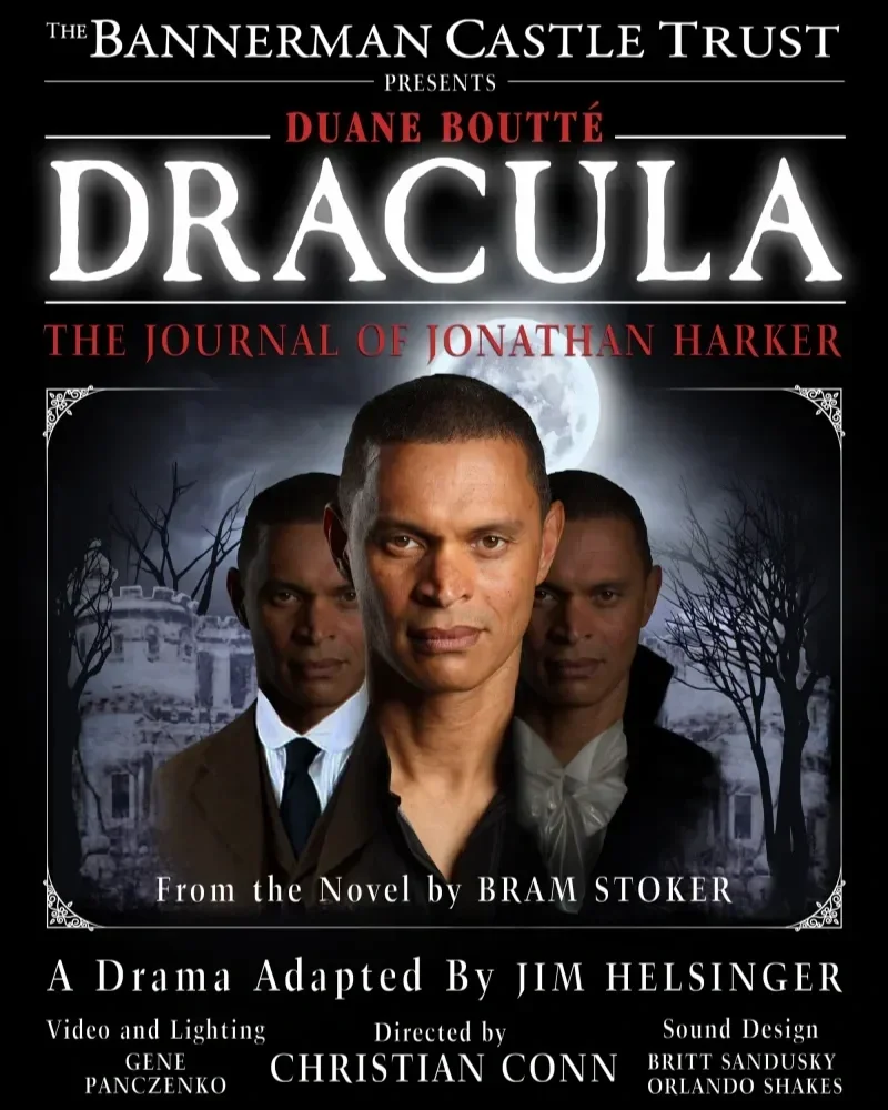 Dracula: The Journal of Jonathan Harker Friday, October 24, 2025 7:30 PM 10:00 PM Google Calendar ICS Dracula: The Journal of Jonathan Harker welcomes actor DUANE BOUTTÉ who portrays Jonathan Harker along with 9 other characters in a tour de force performance. You can find more information and tickets at bannermancastle.org